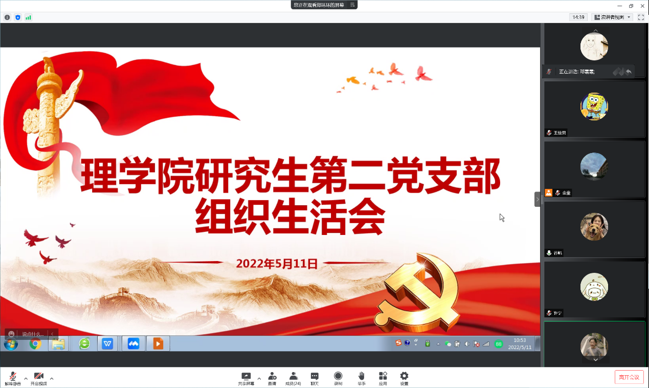 5月11日上午,四川麻将游戏 研究生第二党支部召开组织生活会与民主评议党员,全体27名党员参加了此次会议,曲杰作为联系支部的四川麻将游戏 领导参加了会议,会议由支部书记郑环环老师主持。
