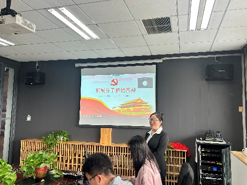 各位积极分子经过精心准备,现场通过五分钟PPT答辩,从思想政治、学习成绩、先锋示范、生活作风等多反面进行了总结和汇报。评委本着公平、公正、公开的原则进行了打分评比。