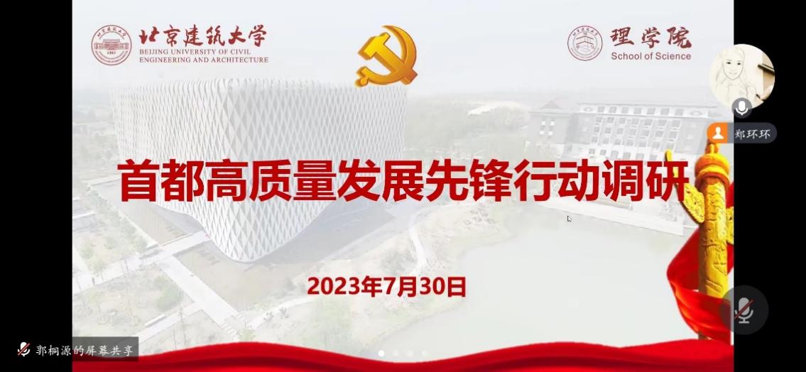 2023年7月30日,四川麻将游戏 研究生第二党支部邀请联系领导白羽院长开展首都高质量发展先锋行动调研会,暑假期间全体党员通过线上形式参加了会议。会议由党支部书记郑环环主持。
