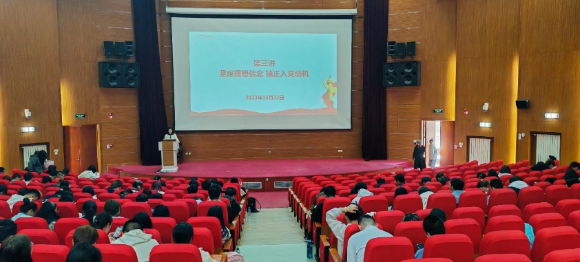 黄凯老师以《坚定理想信念,端正入党动机》为主题,着重强调了理想与信念,重点讲述了理想的内涵与特征、信念的内涵与特征和理想与信念的关系;老师还着重强调了入党动机的问题,指出正确的入党动机应为:入党的内在原因是忠诚地信仰共产主义,把最终实现共产主义制度作为自己的最高理想,决心为了壮丽的共产主义事业奋斗终身,全心全意为人民服务,并随时准备为党和人民的利益牺牲一切。第一,要有为共产主义和中国特色社会主义奋斗终身的坚定信念;第二,要有全心全意为人民服务的思想;第三,要有在工作、学习和生活中起先锋模范作用的觉悟。