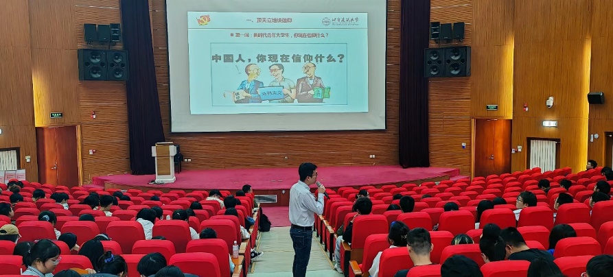 代云老师《习近平新时代中国特色社会主义思想》为主题,以顶天立地谈信仰为切入点给详细讲述了习近平新时代中国特色社会主义思想,并结合“脆皮大学生”等热点事实与同学们互动,生动形象地展示了当代大学生应当有怎样的信仰。