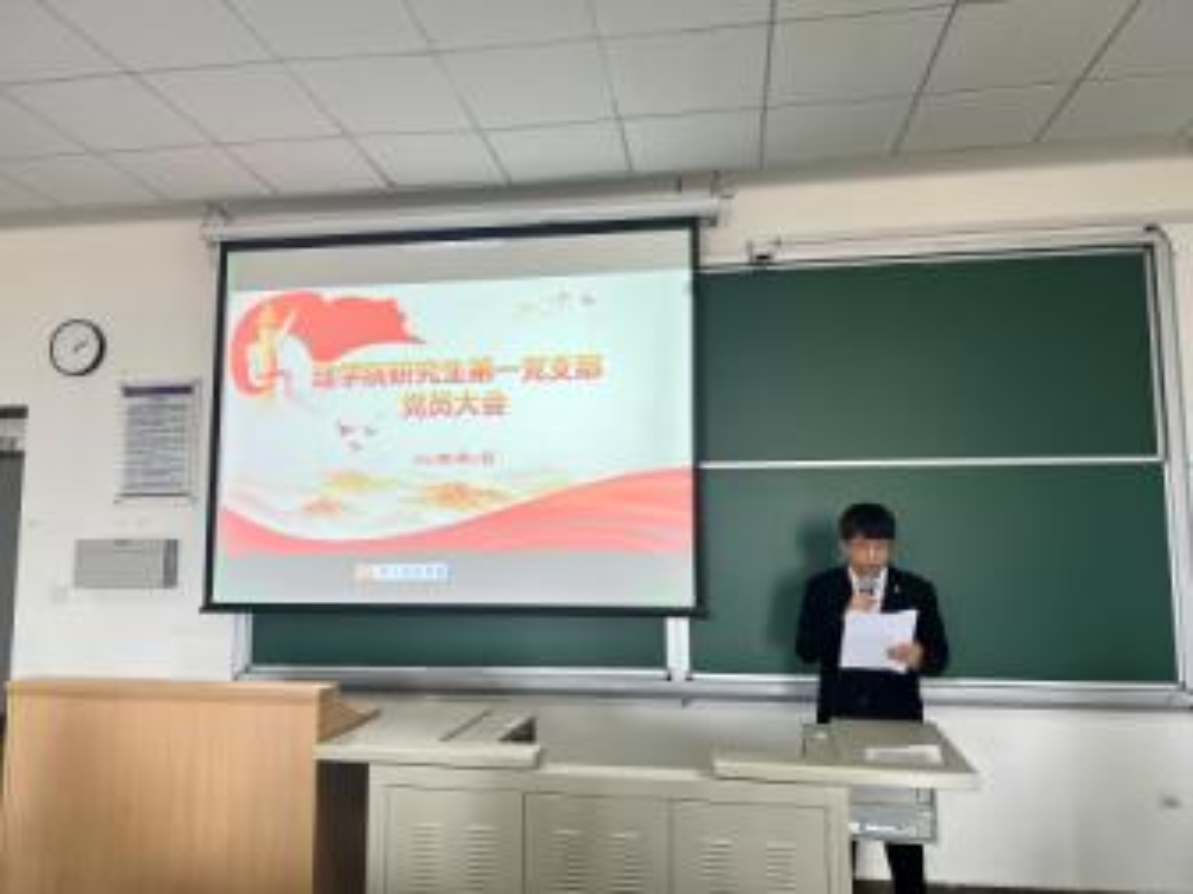 研究生第一党支部召开党员发展大会,开展“学习习近平总书记在中共中央政治局第五次集体学习会时的重要讲话精神”主题党日活动,会议由党支部副书记王聪同志主持。