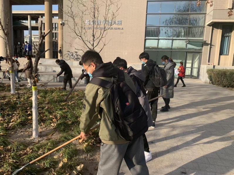 在培训班班长的指挥下,在后勤工作人员的协助下,同学们任务明确、分工到位,纷纷拿起叉子和扫把,有的把树底下的落叶拽出来堆成一堆,有的将成堆的落叶打扫起来,收进垃圾箱。大家感受到了工作人员清扫的不易,也体会到了劳动的乐趣。通过大家的齐心协力,教学楼前的面貌很快就焕然一新。