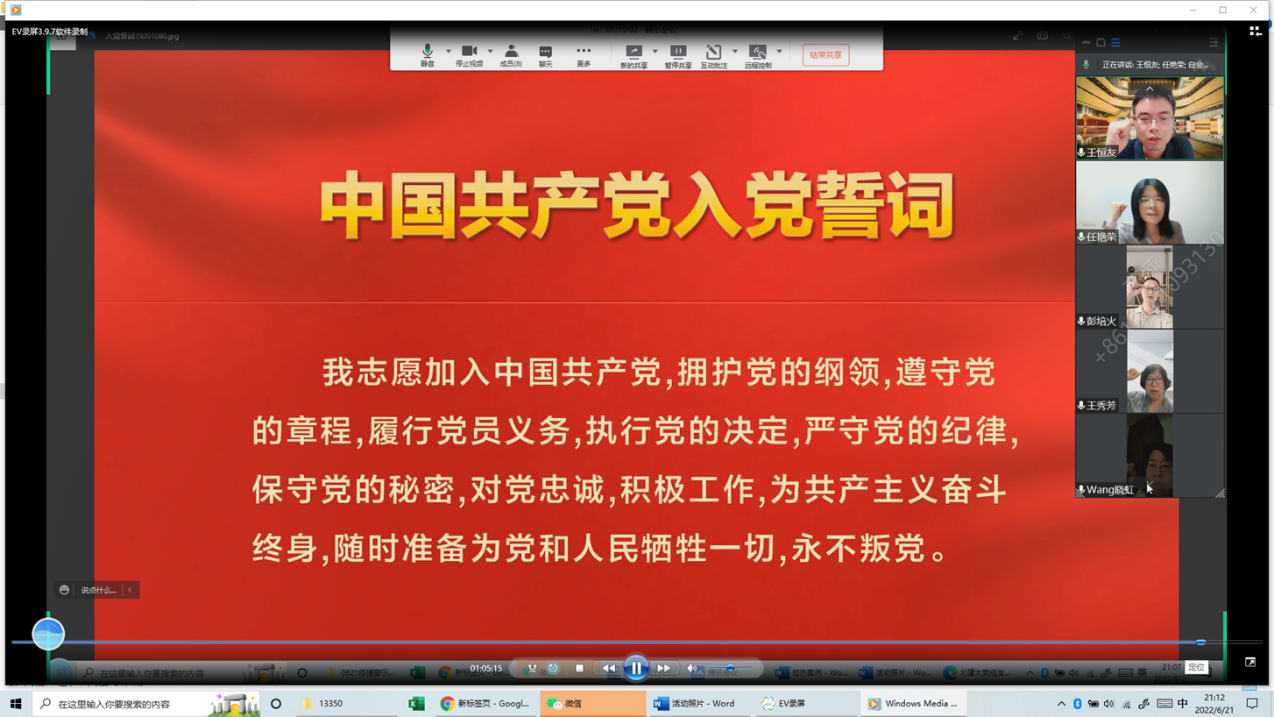 为庆祝中国共产党成立101周年,四川麻将游戏 力学系教工党支部于2022年6月21日开展主题党日活动,举行“重温入党誓词”宣誓仪式。王恒友副院长作为联系力学系教工党支部的四川麻将游戏 领导参加了活动。