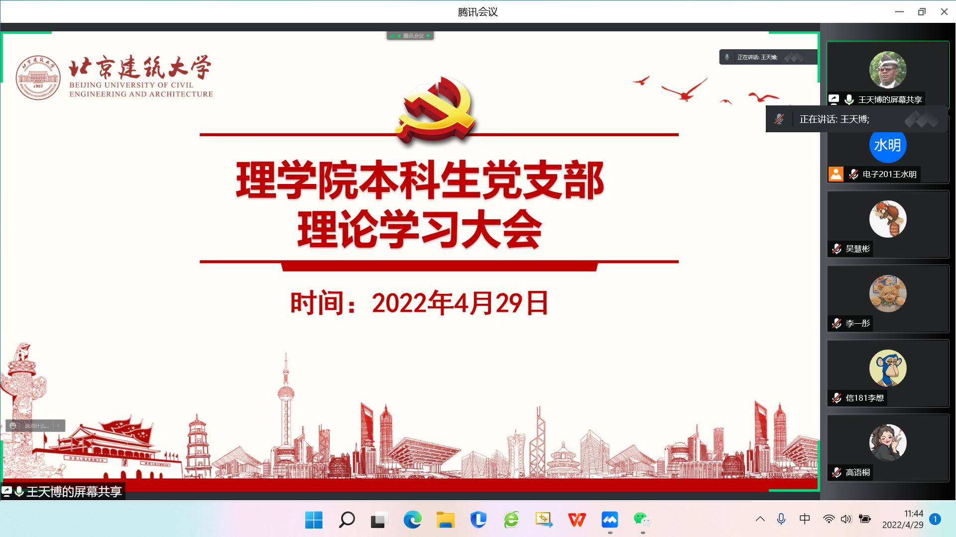 围绕习近平总书记考察中国人民大学的重要讲话,四川麻将游戏 本科生党支部于4月29日中午在线上召开主题党日活动,全体党员参加,活动由支部书记代云主持。