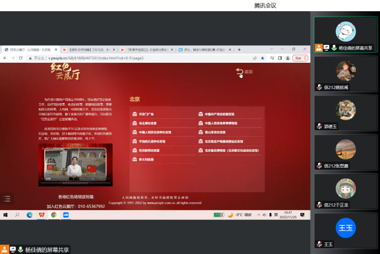 通过线上参观中国共产党历史展览馆、香山革命纪念馆,使入党积极分子深刻体会到无数的革命先辈用自己的青春和热血谱写了一曲曲时代凯歌,他们舍生取义、英勇无畏的精神,让每人都感慨不已,同时更深深地感受到和平的幸福生活来之不易。