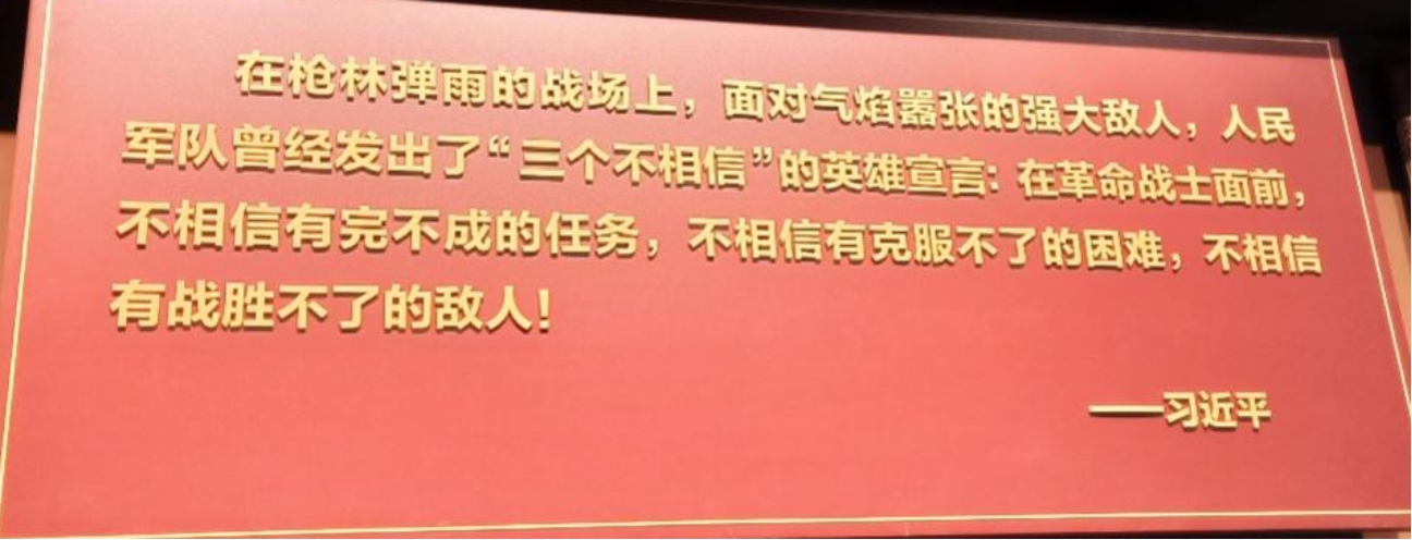 上午,党支部组织没课的党员,集体参观了中国人民革命军事博物馆“铭记伟大胜利 捍卫和平正义”纪念中国人民志愿军抗美援朝出国作战70周年主题展览。展区中,习近平总书记的一段话,给大家留下了非常深刻的印象——“在枪林弹雨的战场上,面对气焰嚣张的强大敌人,人民军队曾经发出了“三个不相信”的英雄宣言:在革命战士面前,不相信有完不成的任务,不相信有克服不了的困难,不相信有战胜不了的敌人!”
