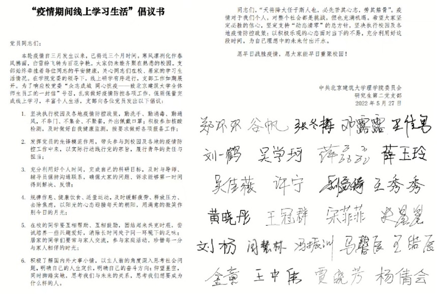 最后,全体党员就“疫情期间线上学习生活”发出了倡议:坚持“动态清零”的总方针,坚决执行校园及各地疫情防控政策,坚定抗击疫情必胜的决心,以积极客观的心态学习生活,为人生规划做好准备。