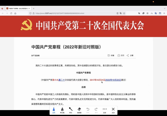 王乔带领全体党员逐字逐句地研读了党章修改前后的对比,党章删去一些已完成的任务,增加了更加时代化的目标,比如“第二个百年”、“新时代新征程”等,以及多次强调党史学习教育,这使大家对党章的新变化新要求有了更为清晰的认识。