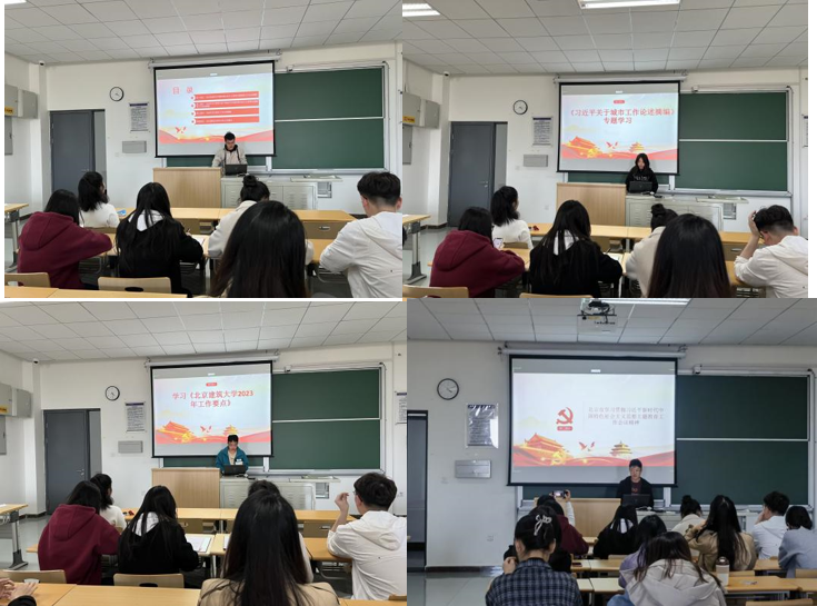 党员向俊霖围绕《北京建筑大学2023年工作要点》讲解,让大家明白23年工作要点是全力做好“一会、三评、三体系、四突破”工作。他从党的政治建设、高水平人才培养体系、师资核心竞争力、科研创新水平、改革发展水平等角度充分讲解,号召同学们结合学校未来工作要点,切实提高专业水平,做到学以致用,踔厉奋发、笃行不怠。