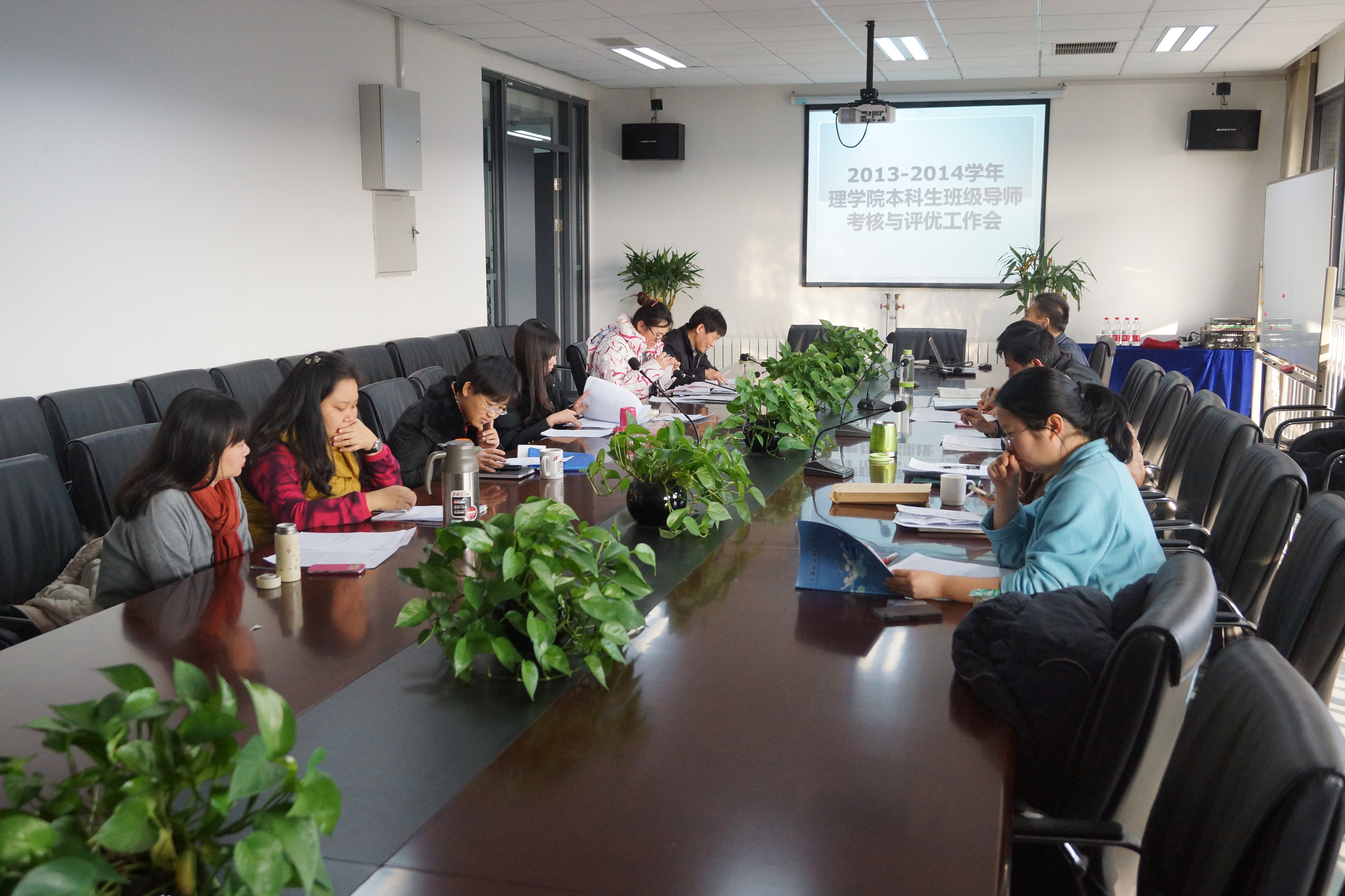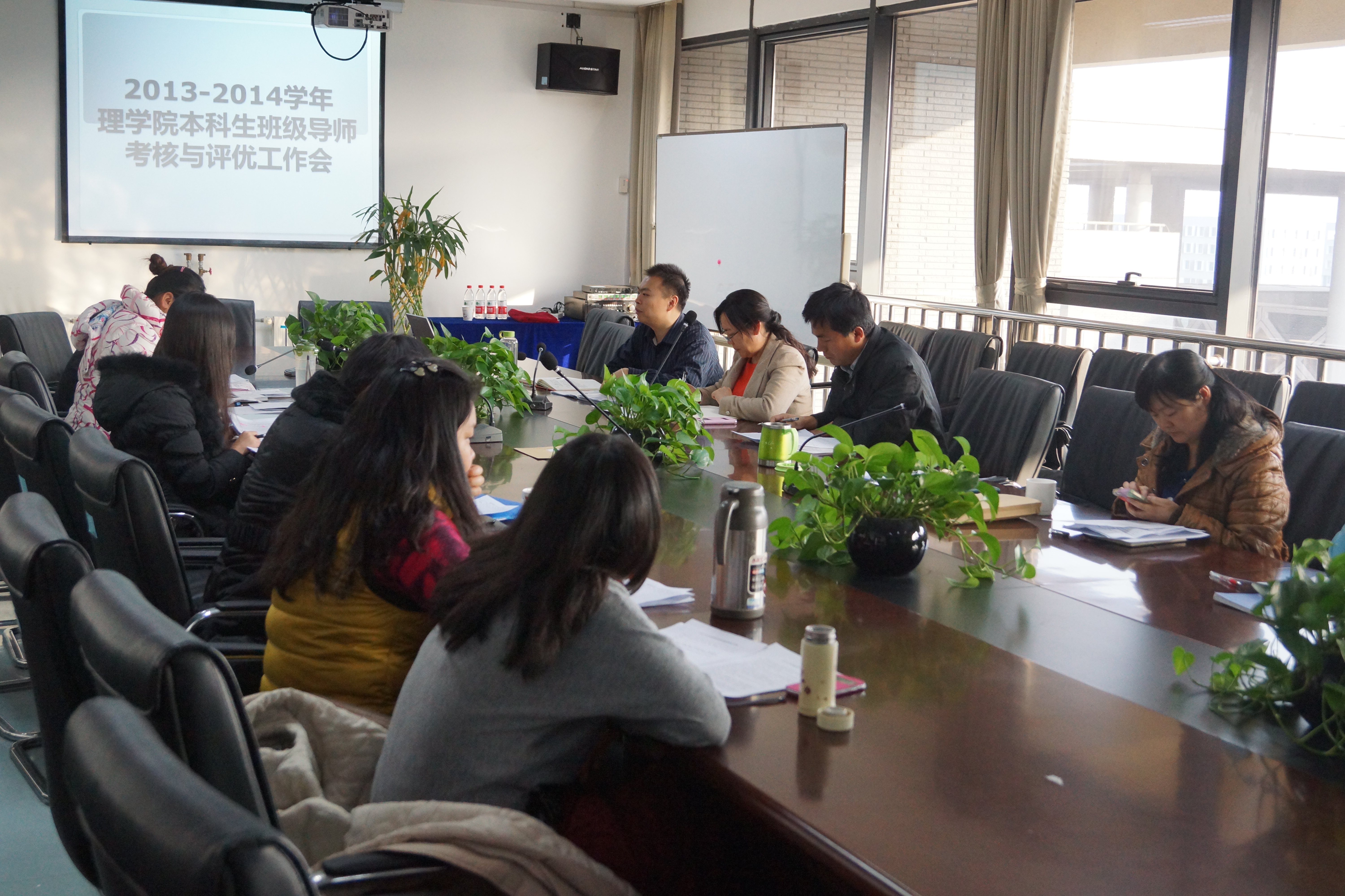 会议第一部分是进行2013-2014学年班级导师考核与评优工作,首先由郝迈介绍四川麻将游戏 导师考核评优办法,接着8位班级导师分别作了工作总结,导师们从一年级的学风建设和班级凝聚力建设、二年级的大学英语四级备考、三年级的学生分类指导、毕业班的就业指导等方面做了充分的介绍。每位导师围绕所带班级的特色工作,进行详细介绍及经验分享。其中,信131班导师毕靖老师谈到,将心理团体辅导引入班级建设中,开展大学生人格漫谈、舞蹈减压、价值观拍卖等活动,加强了班级凝聚力,提高了学生的大学适应力。信131班也被评委2013-2014学年优秀团支部、优良学风班。电子121班导师陈思源老师提出,在班级工作中,重点抓学风、班风,抓典型的示范带头作用。他们班在2014年6月的大学英语四级考试中,班级四级通过率55.8%,比往届通过率提高了12%, 其中,三个宿舍四级通过率100%。导师们的工作汇报,既展示了导师的工作风采,也提供了一个互相学习提高的机会。所有老师汇报后,由班级导师考评领导小组集体投票产生优秀班级导师后备人选,提交四川麻将游戏 党政联席会审议。