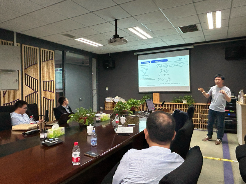 报告会上,孙永征教授作了题为“Unveiling Critical Dynamics: Oscillations,Turing Patterns, and Rumor Spreading in Complex Networks”的报告。他分享了复杂的网络系统,从生态系统和气候到经济和社会结构,通常到达系统进行相变的关键点。他的报告揭示了在理解网络动态的关键点,涵盖振荡,图灵不稳定和谣言传播方面的最新研究成果,探讨了噪声对图灵不稳定性发生的影响,阐明了随机元件如何影响网络系统中的模式形成,探索了多层复杂网络中谣言传播的临界点,从而揭示了跨互连层的信息传播的复杂动力学。