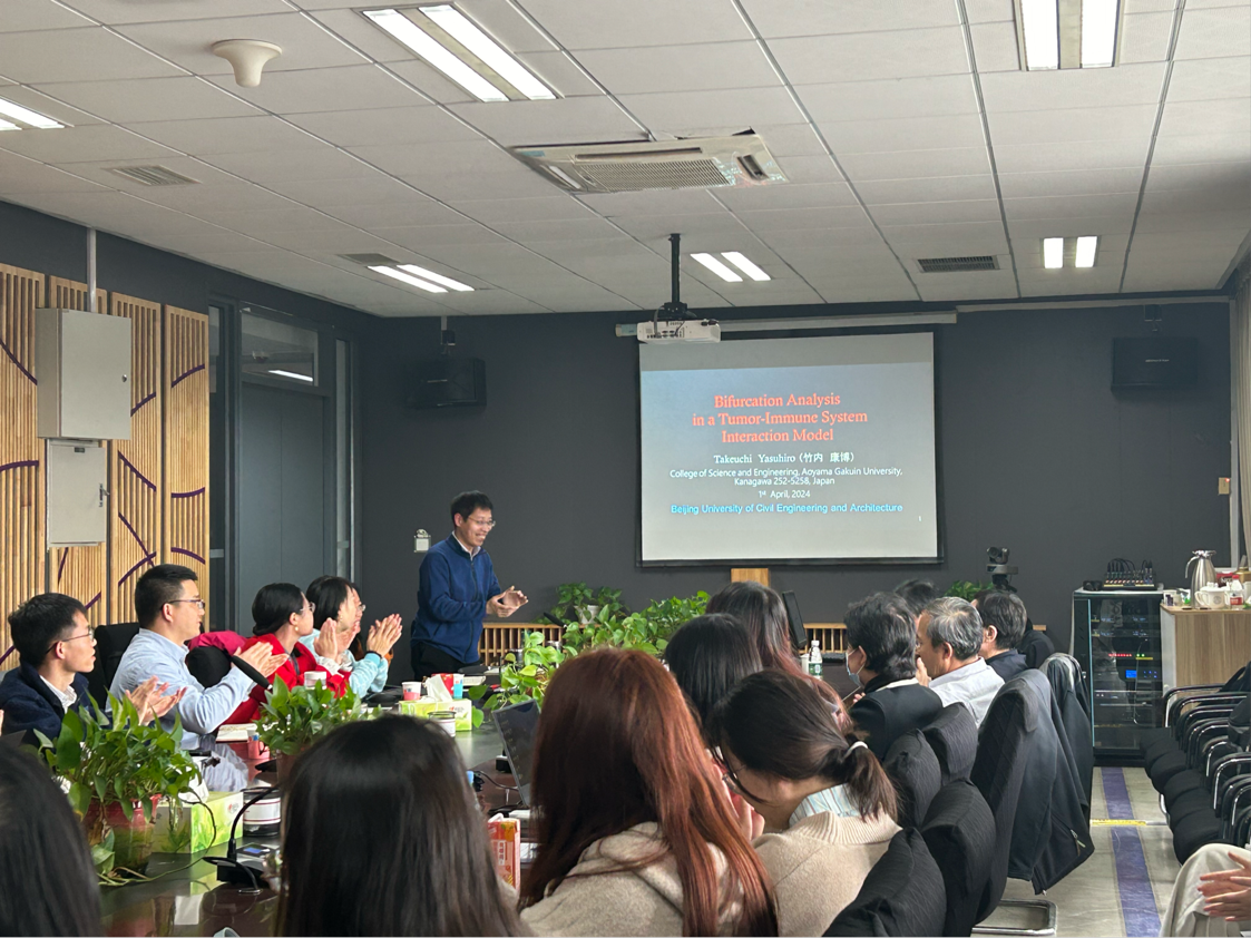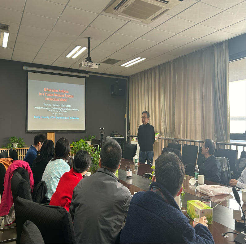 4 月1 日下午,四川麻将游戏 邀请日本青山四川麻将游戏 大学YasuhiroTAKEUCHI教授、北京科技大学应用数学系马万彪教授在基础楼C 座509 做学术报告。崔景安教授、北京科技大学博士生、四川麻将游戏 生物数学团队教师和学生共计30余位参会,报告会由四川麻将游戏 副院长刘茂省教授主持。