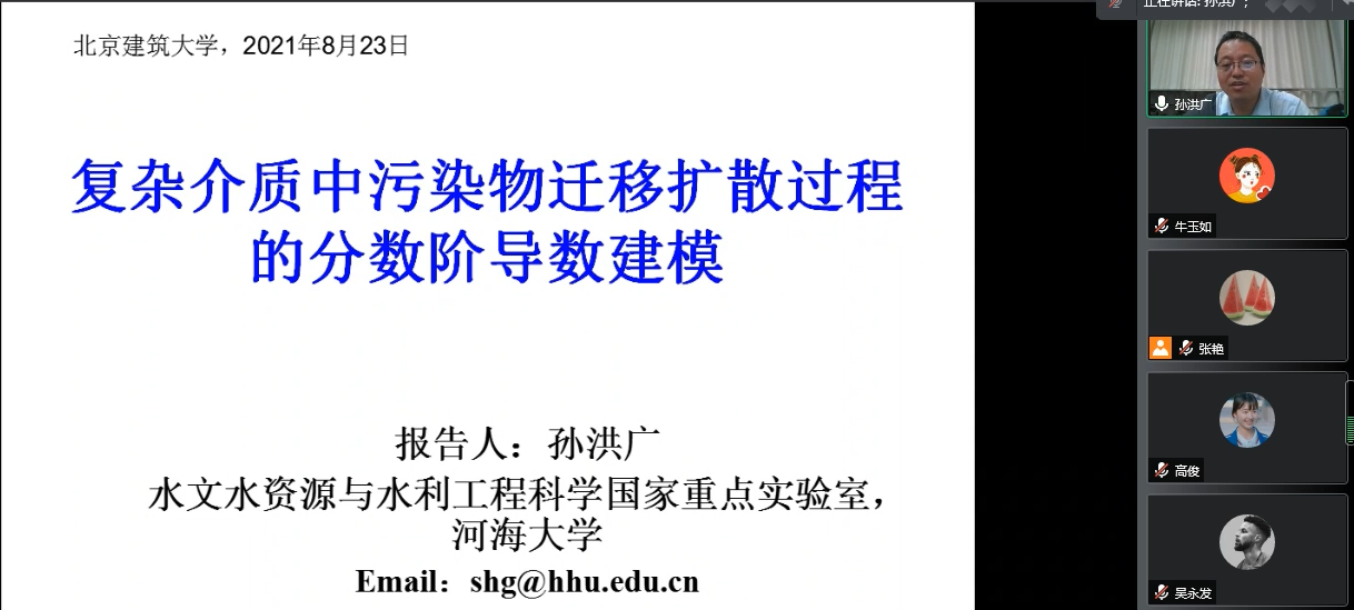 2021年8月23日上午,人力资源处、教师发展中心和四川麻将游戏 邀请河海大学博士生导师、水文水资源与水利工程科学国家重点实验室中美地下水与环境流体力学中心主任、水力学与流体力学研究所副所长孙洪广教授做题为“复杂介质中污染物迁移扩散过程的分数阶导数建模”的学术报告,四川麻将游戏 流体力学团队的师生参加,会议由张艳教授主持。