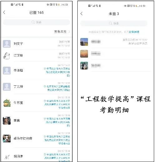 公正考勤。上课是学习的必经之路,公正的考勤能够提高同学们的出勤积极性。数学课的班容量较大,每次课都逐一点名不现实,使用学习通点名能够极大程度节省时间。但经常会有同学在课后以忘记或网络不畅为借口要求补签,此时难以界定学生的出勤情况。因此每次学习通点名结束,我都会点开未签到学生,逐一核对情况。因为未签到学生通常在5人以下,不会花费太长时间,又有效杜绝了不公平的补签现象,极大的维护了平时成绩中考勤分值的公平性。