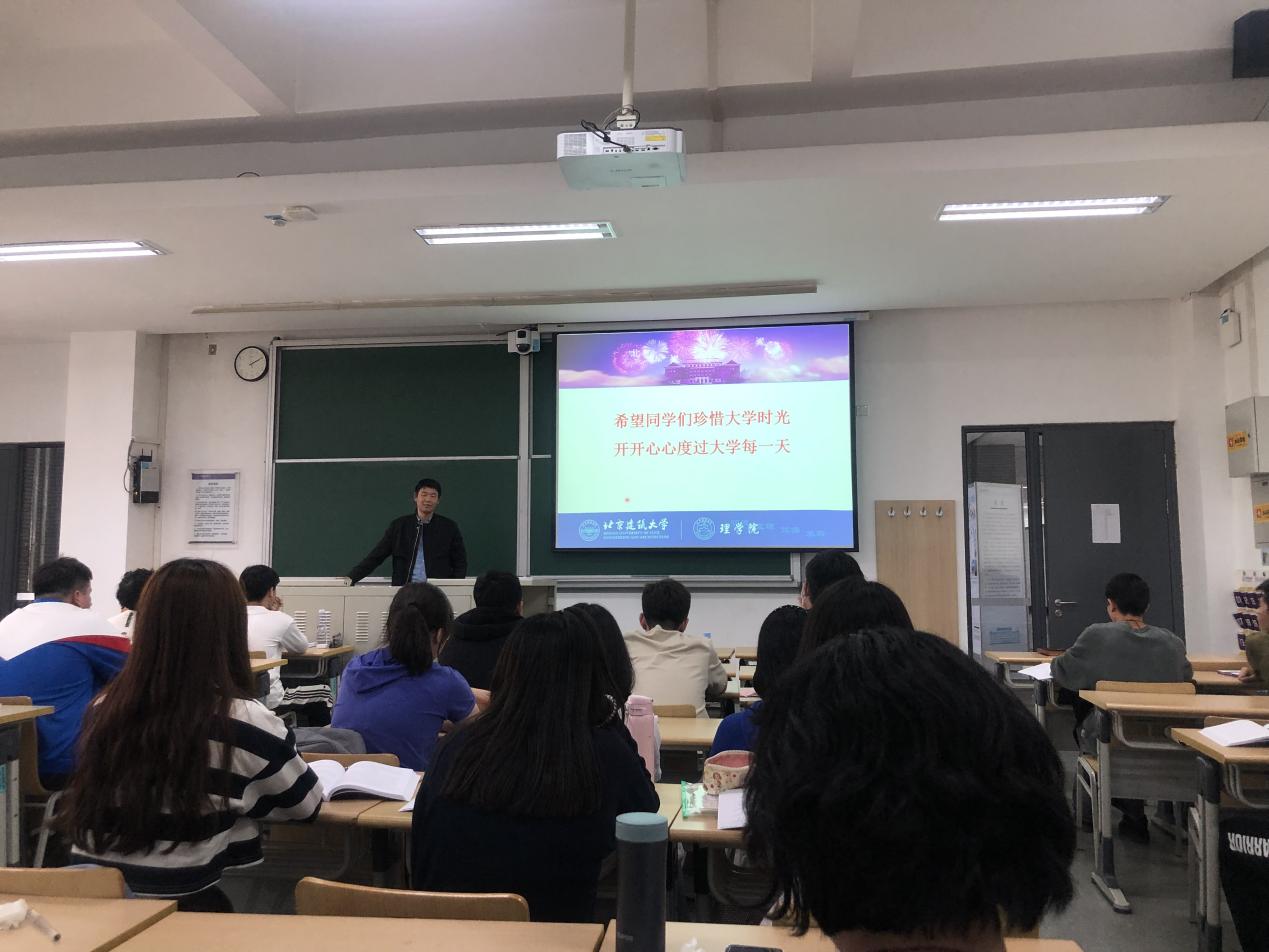宋奇超根据《北京建筑大学本科学生手册》(2021版)中的重点内容向同学们进行了介绍,其中包括学籍信息,专业培养方案,学分制选课,考试,成绩与绩点,毕业资格与学位等内容。
