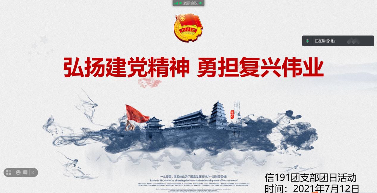 电子181团支部于7月12日线上召开了主题会议,同学们围绕习近平总书记指出的“一百年前,中国共产党的先驱们创建了中国共产党,形成了坚持真理、坚守理想,践行初心、担当使命,不怕牺牲、英勇斗争,对党忠诚、不负人民的伟大建党精神”进行了深入的交流,并表达了深深爱国之情和拳拳报国之意。