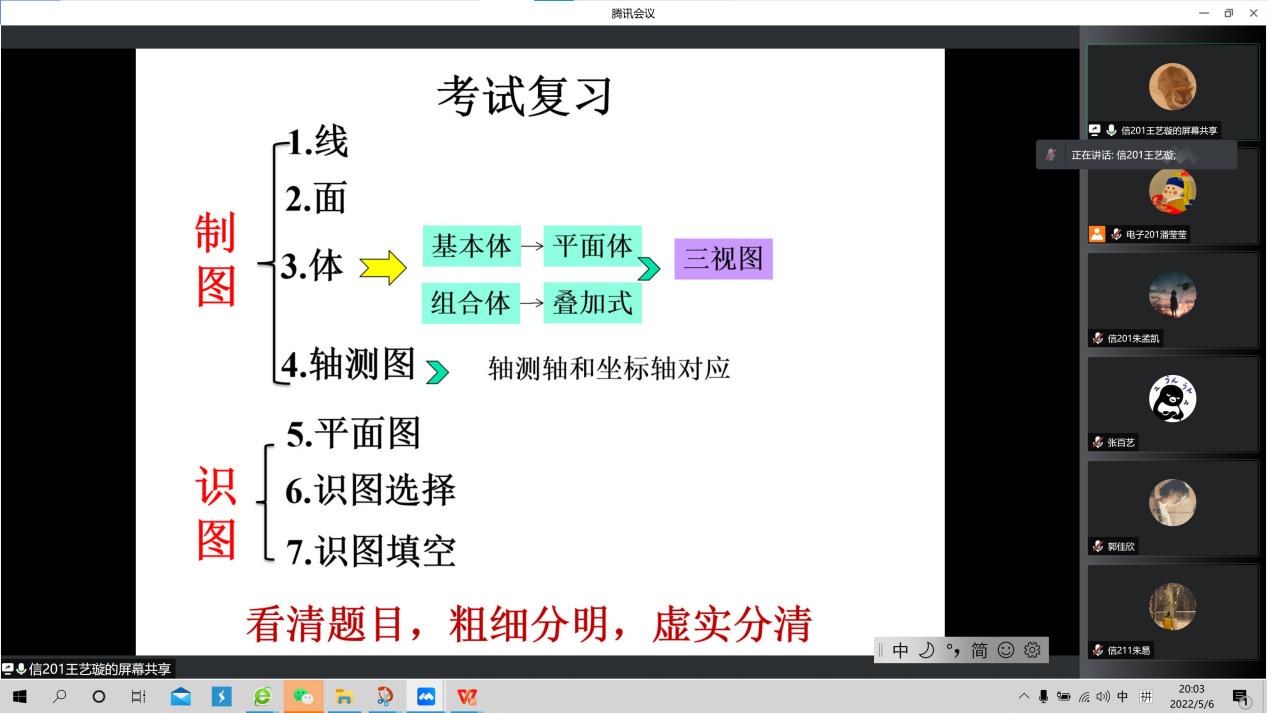 5月6日晚,北京建筑大学“小葵花课堂”以腾讯会议线上形式开展《工程识图》课程朋辈辅导。此次朋辈辅导,由四川麻将游戏 信201班王艺璇、郭佳欣、朱孟凯、张百艺4名信计专业本科生进行,信211班、信212班同学参加。