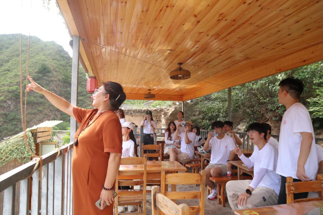 高峡仰首窄云天,爨底下村环境优美、依山而建,站在一线天面前,雄浑气息铺面而来,沿着村庄的街道,实践团成员深入村落展开调研。在探寻村落美景和文化底蕴的路途中,实践团成员走进了村中地势较高的一家客栈,站在客栈内的顶楼平台,看到了雄伟的山脉和山脚处的寺庙。作为红色历史源远流长的古村落,爨底下村将自身的红色历史文化进行整合,在村中建成了一座乡情村史纪念馆,在游览的过程中,实践团成员了解到了爨底下村人民英勇抗击日本侵略者的英雄事迹,不屈不挠的革命意志和勇于抗争的无畏精神感动了全体成员。爨底下村具有丰富的民宿文化,在这个传统古村落,可以看到宁静典雅的四合小院,街道上随处可见写生绘画的艺术爱好者,每条小巷都充斥着浓厚的艺术气息。在调研的过程中,实践团成员拜访了村中的老党员、拥有红杏园的老奶奶、慈祥的农场主,老人们向我们讲解了旅游业发展为村中带来的面貌变化,每个人的脸上都洋溢着幸福的笑容。两天的实践过程中,实践团成员发挥专业优势,在传统建筑保护、基础设施建设、人居条件改善、旅游体验提升等方面献言献策,以实际行动为新时代美丽乡村的建设贡献青春力量。