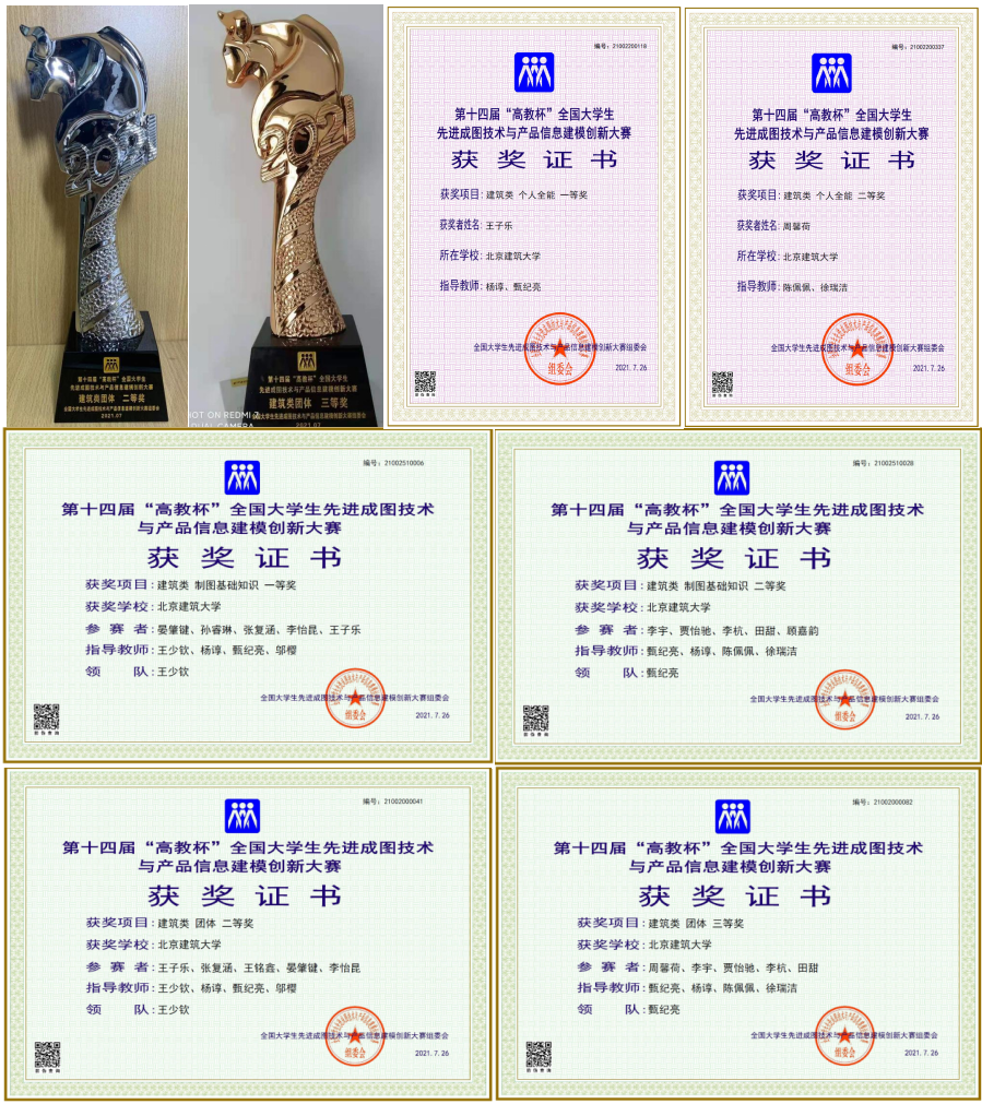 工程图学系6位教师指导的两支队伍15名同学参加了本次比赛,获得建筑类制图基础知识一等奖和二等奖、团体二等奖和三等奖;同时还获得个人全能一等奖1项、二等奖7项、三等奖6项。