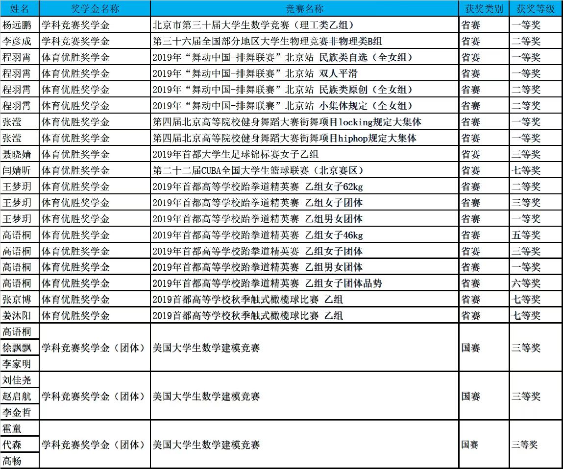 【2020】学生获省级及以上各类竞赛奖励汇总