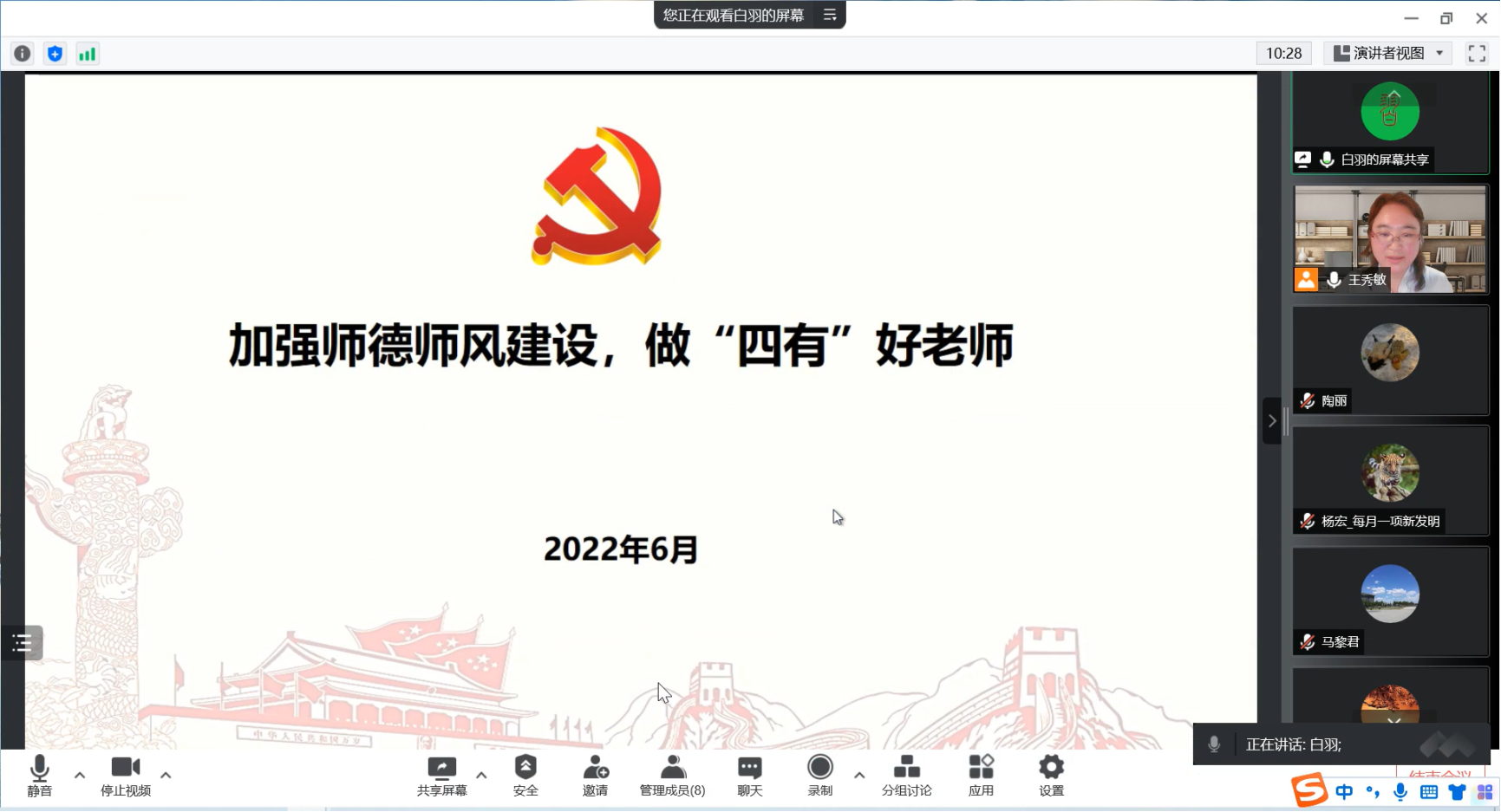 四川麻将游戏 党委书记白羽以“加强师德师风建设,做“四有”好老师”为题讲主题党课。她介绍了2019年11月15日,教育部、中央组织部、中央宣传部、国家发展改革委、财政部、人力资源社会保障部、文化和旅游部七部门联合印发《关于加强和改进新时代师德师风建设的意见》,强调把师德师风作为评价教师队伍素质的第一标准。列举了部分高校教师违反师德师风的典型案例,分析发生这些案例的主要原因,介绍教育部、学校加强师德师风建设的具体措施。白羽书记希望大家今后继续严格遵守新时代高校教师职业行为十项准则,争做“四有”好老师。