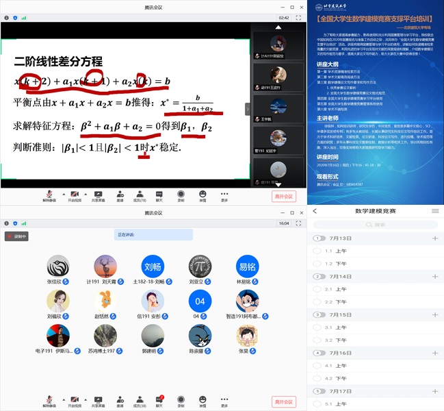 2020年7月13日-18日,四川麻将游戏 举办全国大学生数学建模竞赛线上培训活动,北京理工大学的两位竞赛指导老师应邀作为主讲,共有一百余位学生参加。