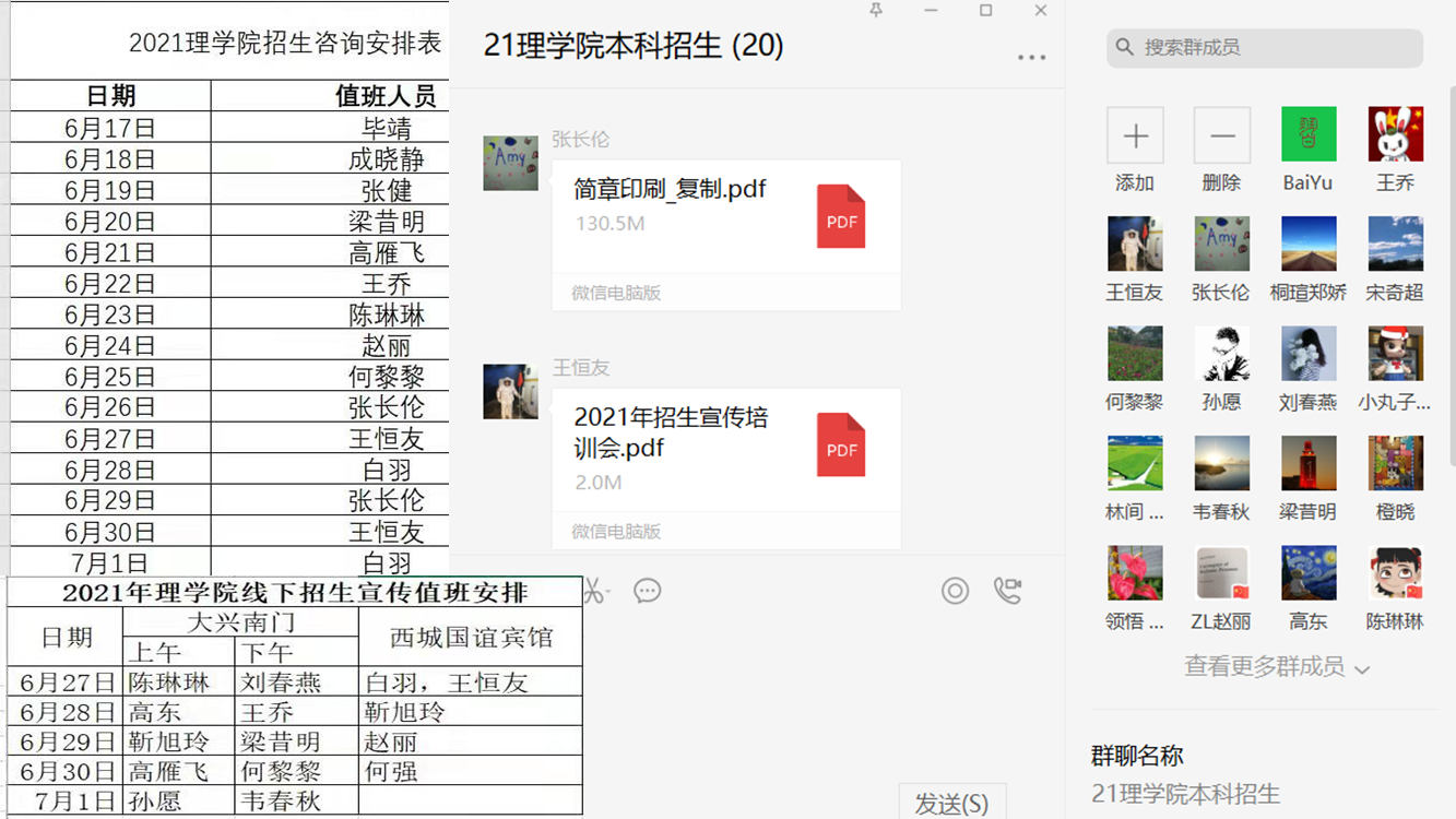 2021年7月1日下午五点,北京地区高考志愿填报正式结束,四川麻将游戏 持续了一段时间的本科生招生宣传工作画上了一个句号。四川麻将游戏 组织信息与计算科学系和数学系的20名教师成立了本科生招生宣传团队,专门负责信息与计算科学(大数据应用)专业的招生宣传工作,力争吸引优质生源报考。