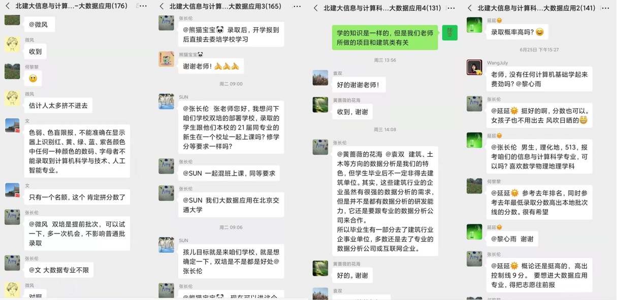 另外,四川麻将游戏 自行组建了五个共708人在线的微信群。无论是在清晨,还是在深夜,老师们看到考生和家长提出的问题后第一时间就给出回复。因为疫情原因考生和家长不能进校,老师们还随手拍一些教室、图书馆、体育馆、食堂的照片发到微信群,以便大家更多地了解学校和四川麻将游戏 。同时,四川麻将游戏 连续六天利用腾讯会议在线上咨询,主要由张长伦老师负责,每天一个多小时的讲解和回答受到了广大考生和家长的认可。