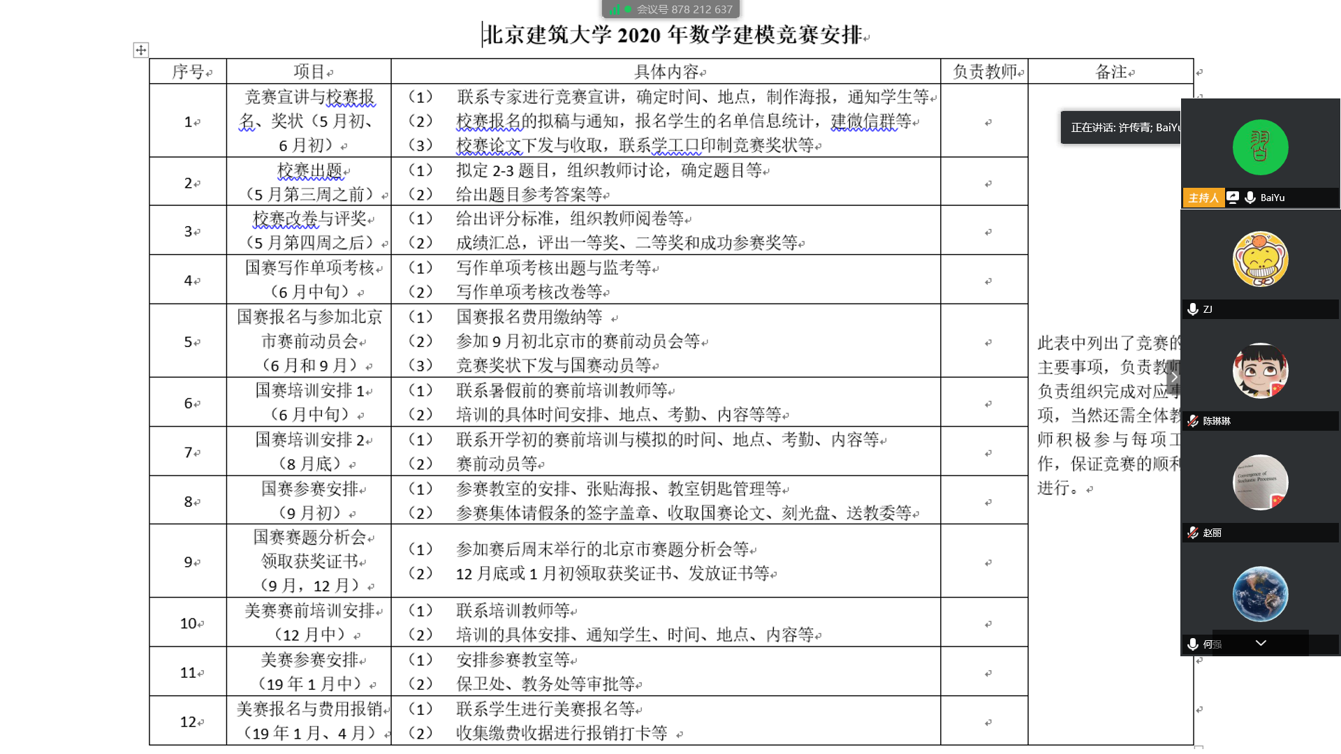 由于疫情的影响,学生没有到校学习,4月中旬四川麻将游戏 数学建模竞赛指导小组的老师们就专门召开线上会议,讨论是否如期举办校赛。老师们各抒己见,仔细分析了利与弊,最终达成了线上举办竞赛的一致意见,并讨论了具体的报名、出题、发题、收题、评审的细节。