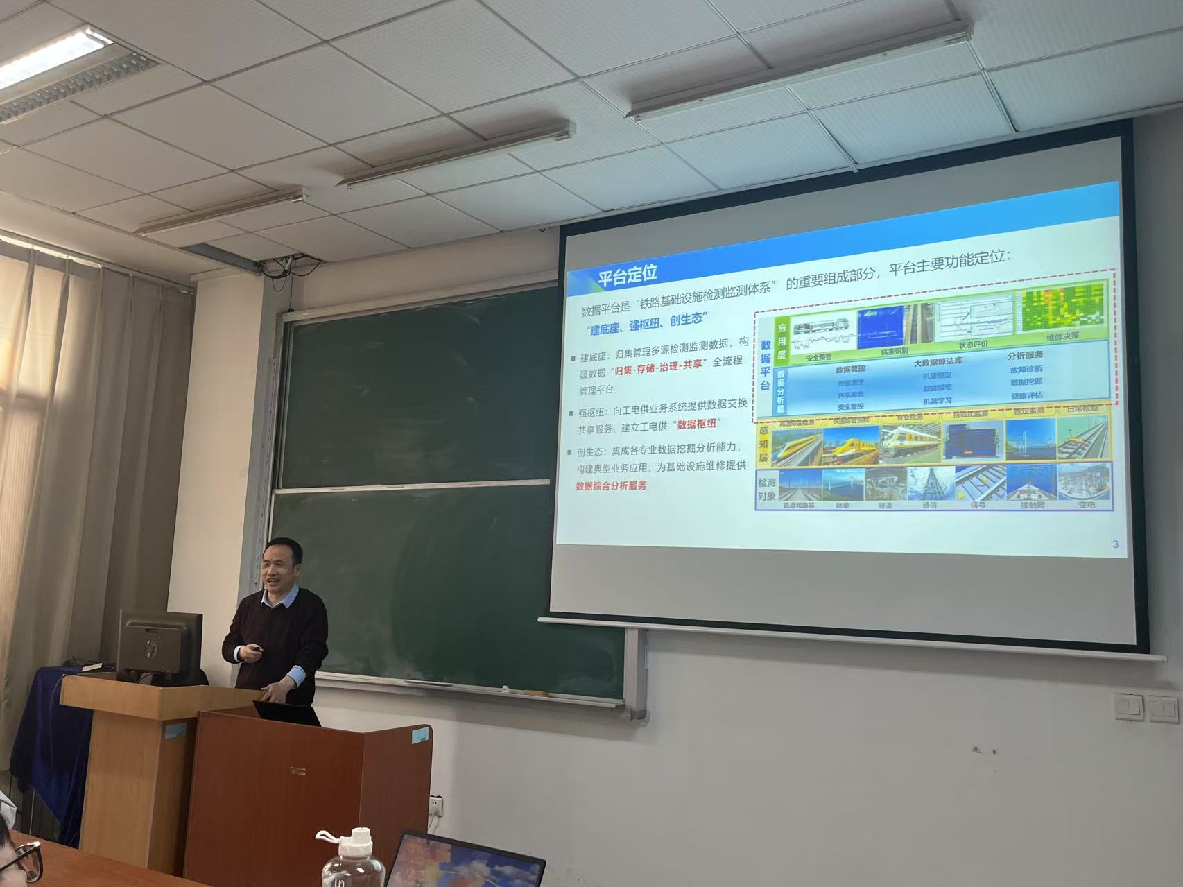 春季学期伊始,由四川麻将游戏 和学校教师发展中心联合举办的跨学科协同交叉学术报告暨《应用统计前沿技术与应用》系列讲座如约而至。3月10日下午,系列讲座之一在基础教学楼C座416举行。本次报告会邀请中国铁道科学研究院刘金朝研究员分享了题为“铁路基础设施检测监测数据平台和车体归一化”的学术讲座。四川麻将游戏 2024级应用统计专业全体研究生及大数据建模及应用团队的师生30余人参加了本次报告会,报告会由四川麻将游戏 副院长王恒友主持。