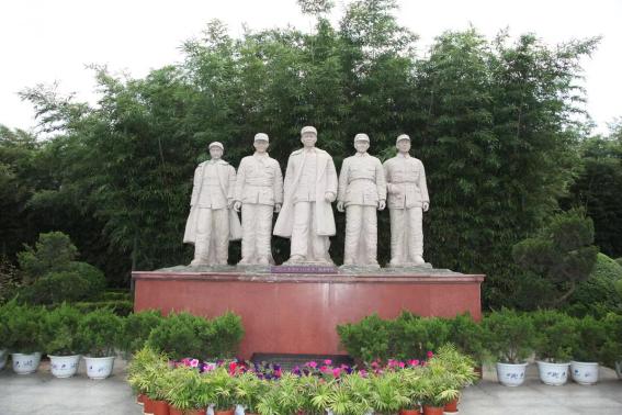 第一展区外,五位白色的伟人雕像格外引人注目。穿过第二展区,踏着灰色的砖路向前,可见一排排错落有致、有年代感的灰瓦房。这里,曾留下彭雪枫、李先念、刘少奇等人工作和生活的足迹。