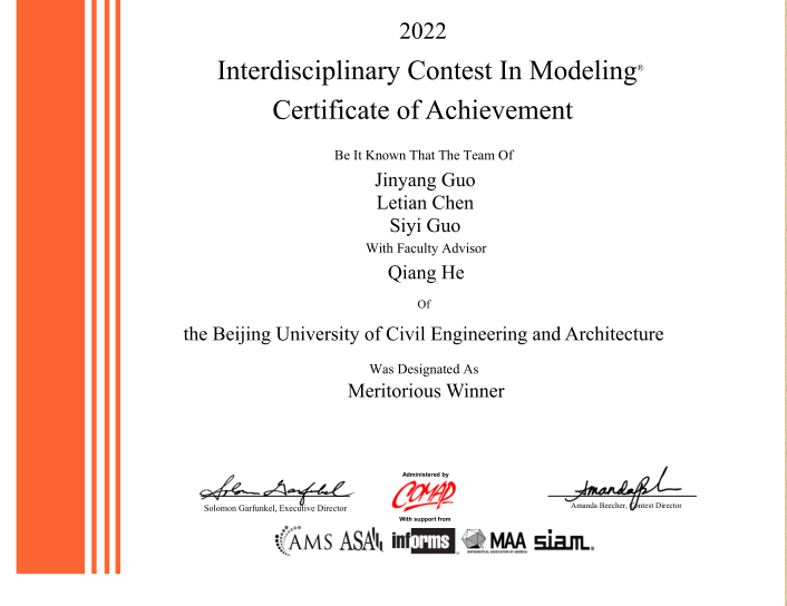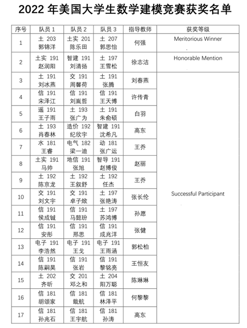 我校学生在2022年美国大学生数学建模竞赛中获得佳绩