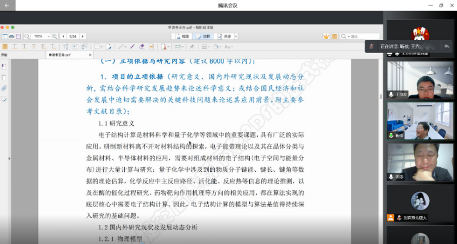 随后,三位专家主要对六位青年教师的申报书进行了详细的评审。专家们分别从题目与摘要的凝练以及科学属性的阐述近些评议。特别强调摘要的撰写一定要有层次感,科学问题属性必须要挖掘技术问题背后的科学问题。此外,专家们又从“立项依据”的行文技巧再到“研究内容、研究方案以及研究基础”的科学凝练等等进行了深入的剖析,对每个申报书提出了针对性宝贵意见和建议,评审活动历时3个多小时。参会老师对三位专家提出的宝贵建议表示感谢,并表示会根据专家的建议积极修改,进一步完善申请书。
