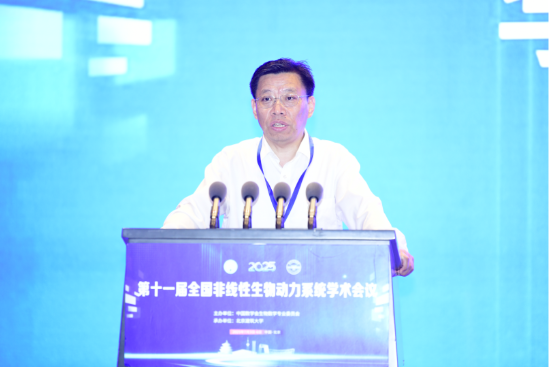 中国数学会生物数学专业委员会主任、西安交通大学肖燕妮教授致辞。她介绍了自1985以来我国生物数学研究的发展历程,强调了全国非线性生物动力系统会议是我们生物数学领域的重要学术交流平台,历经十届发展,已成为展示前沿成果、碰撞创新思想、促进深度合作、培育青年人才的标志性盛会。她着重说明数学在交叉学科中的广泛作用,倡导大家立足于实际,做“顶天(深刻)立地(扎根于实际)”的数学。她代表中国生物数学专业委员会对北京建筑大学的精心组织和周到安排表示衷心的感谢。