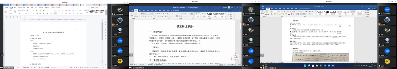 11月1日上午,高等数学教学团队利用腾讯会议开展了2022-2023学年第一学期的第二次集体备课。会议由数学与数据科学系副主任何强老师主持,全体高等数学任课教师和部分青年教师参加,主要介绍和讨论了《高等数学A(1)》课程的第三、四、五章的教学内容,分析了本学期第一次月考的成绩。