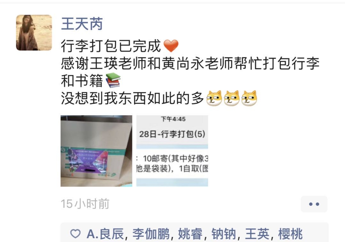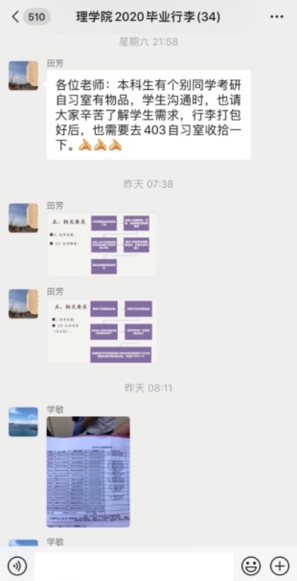 一张张熟悉的面孔,是不是多了几分亲切感。这之中有我们亦师亦友的导师,有为我们上了四年专业课的专业教师,也有为我们日夜操劳的班主任,辅导员。一大早,老师们齐上阵,开始了一天的打包工作。