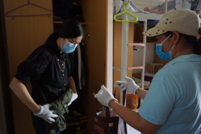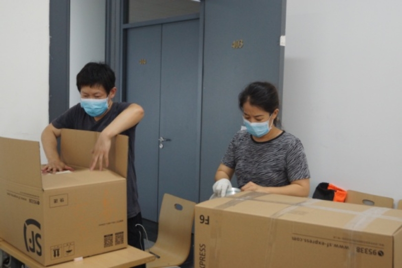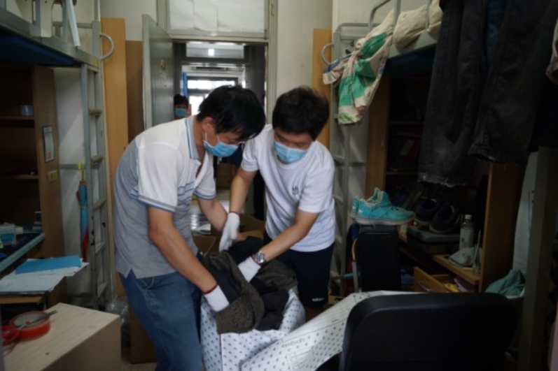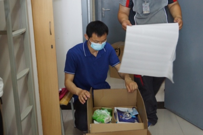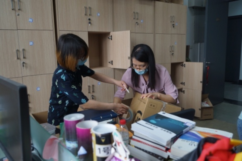 本科生考研教室、研究生工作室还有大量书籍和物品,放心,我们的老师一打包完宿舍的物品,就转移到了基C四层,视频分拣、打包装箱,丝毫不马虎。