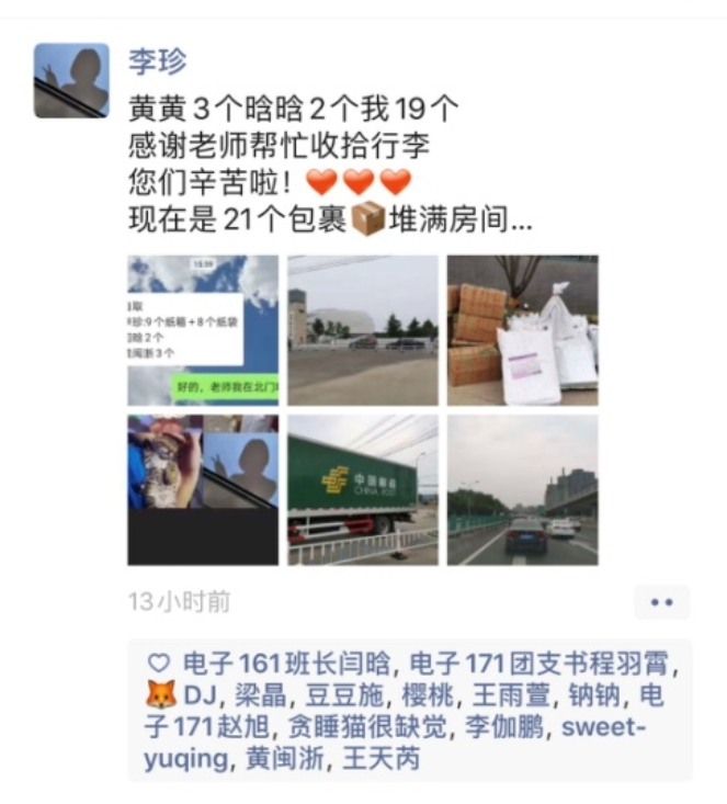 看到老师们的辛苦付出,同学们在朋友圈里纷纷表达对老师们的感谢!