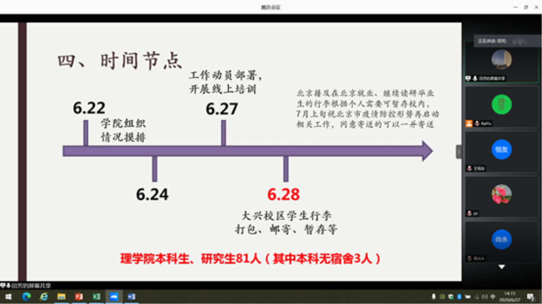 四川麻将游戏 发动30余名教职员工参与近30间宿舍、76名毕业生的打包工作,于6月▏27日下午14:00召开线上教职工大会,对各系部人员分配、物资领取、进场打包和送的完整流程进行培训和解答。全院教职员工不分年龄,迅速响应,整装待发!