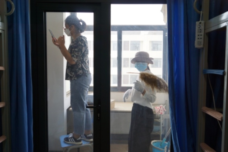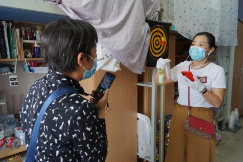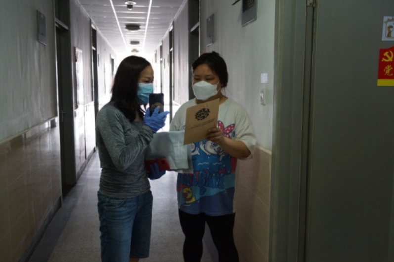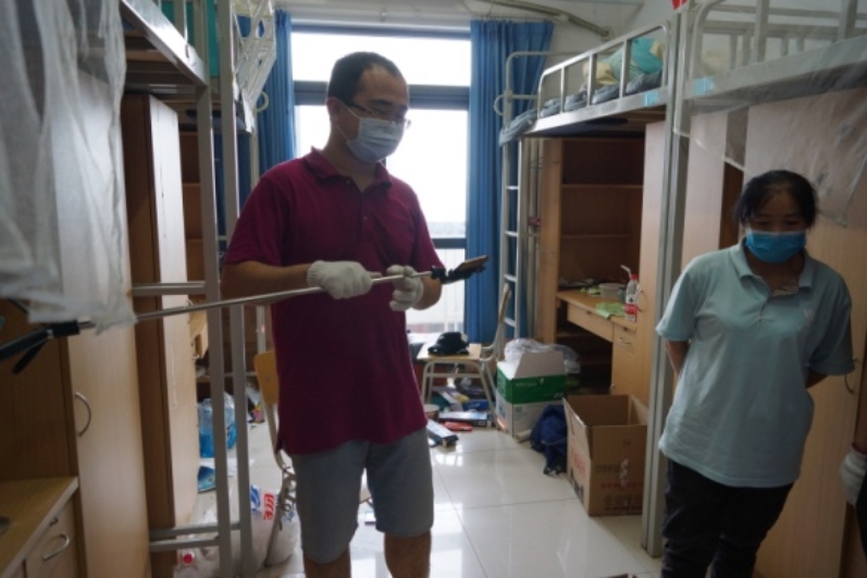 “同学,你看一下这是你的床铺”,“好的,这个我帮你装起来”,“跟你确认一下,这件物品暂存在学校”......面对每一名毕业生,都要仔细再仔细,确认再确认。真正做到一对一,点对点。