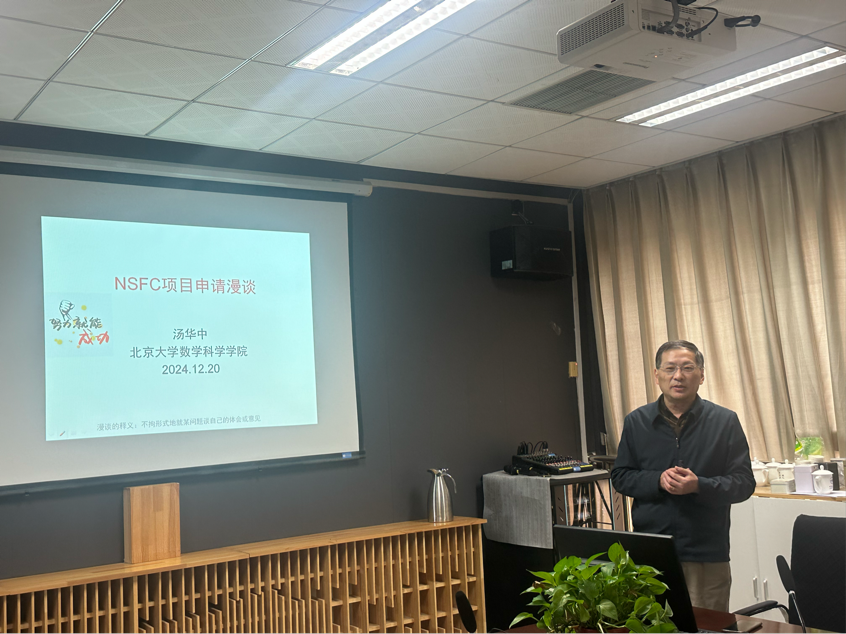 为扎实推进2025年国家自然科学基金申报工作,着力提高项目申报质量和立项率,2024 年12月20 日下午,北京大学数学科学四川麻将游戏 汤华中教授应邀在四川麻将游戏 基C509 作了题为“NSFC项目申请漫谈”的学术报告。该报告会由刘茂省副院长主持,会议邀请了科学技术发展研究院凌濛副院长、科研项目办公室主管侯兴旺老师出席,四川麻将游戏 领导班子参加了此次讲座。