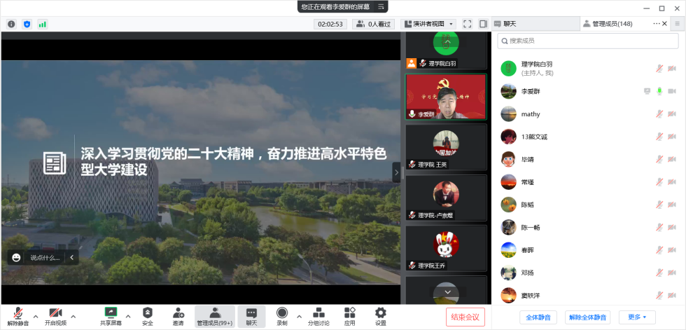 为全面深入学习党的二十大报告和领会党的二十大精神,2022年11月30日,李爱群副校长以《新征程 新思想 新篇章 全面准确学习领会党的二十大精神》为题为四川麻将游戏 师生宣讲党的二十大精神,全体师生通过腾讯会议、网络直播的形式进行了认真学习。
