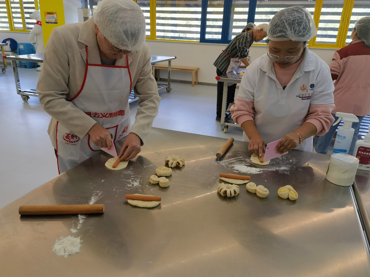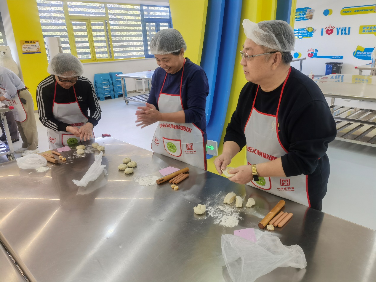 在活动中,工作人员介绍了义利的创业史和发展史。随后退休老师们参观了义利产品展示廊和自动化工厂生产线,了解了北冰洋汽水从配料、灌瓶、密封到打包的整个过程。最后进入本次参观学习的面包DIY环节,各位退休老师在认真聆听了面包师的讲解之后,充分发挥了自己的创造力并展示自己面包制作和烘焙技艺,最后一份份香气扑鼻的面包展示在各位退休老师的面前。