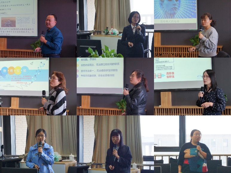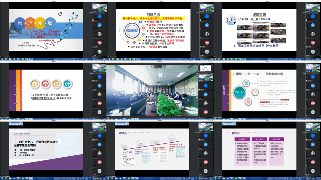 来自四个系(中心)的9位教师(教学团队)代表进行了教学创新设计汇报,包括《高等数学》(卢崇煜)、《概率论与数理统计》(赵丽)、《C程序设计》(毕靖)、《面向程序设计》(张健)、《工程力学》(白会娟)、《物理实验》(王秀敏、贺柳良)、《模拟电子技术》(黎芳)、《工程制图与BIM技术》(邬樱)。他们结合人才培养目标和教学实践,全面说明了所授课程的设计思路,以先进的教学理念精心设计教学内容,以科学的教学机制、合理的课堂调控能力充分展示各自的教学能力和教学创新水平,突出了教学改革与创新,展示了相关过程性支撑资料。
