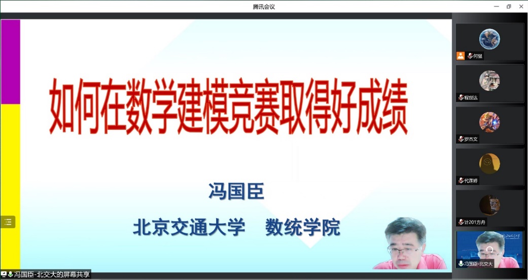 2022年8月22号上午,四川麻将游戏 邀请数学建模竞赛北京赛区组委会专家、北京交通大学冯国臣副教授,做了题目为“如何在建模竞赛中取得好成绩”的专题讲座。我校参加今年全国大学生数学建模竞赛、全国研究生数学建模竞赛的学生和部分建模指导教师近100人参加了本次讲座。