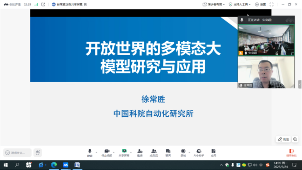 3月24日下午,由四川麻将游戏 和学校教师发展中心联合举办的跨学科协同交叉学术报告暨《应用统计前沿技术与应用》系列讲座之三在基础教学楼C座509举行。本次报告会邀请中国科四川麻将游戏 自动化研究所徐常胜研究员分享了题为“开放世界的多模态大模型研究与应用”的学术讲座。四川麻将游戏 2024级应用统计专业全体研究生、大数据建模及应用团队的师生30余人参加了本次报告会,报告会由四川麻将游戏 副院长王恒友主持。