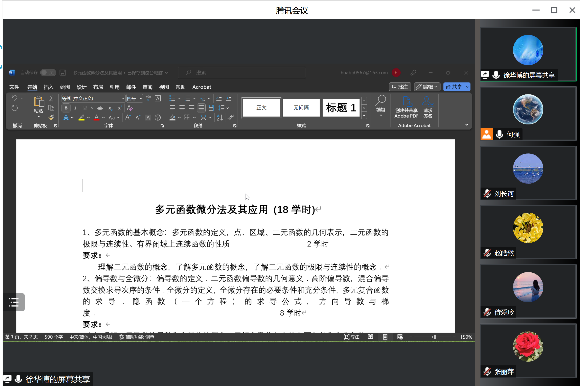 2023年2月16日上午,高等数学教学团队线上开展2022-2023(2)学期的第一次集体备课活动。活动由数学与数据科学系副主任何强老师主持,本学期全体高等数学任课教师参加。