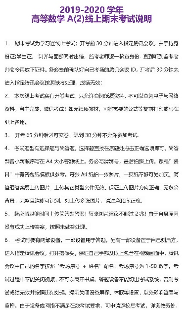 高等数学A(2)顺利完成线上考试