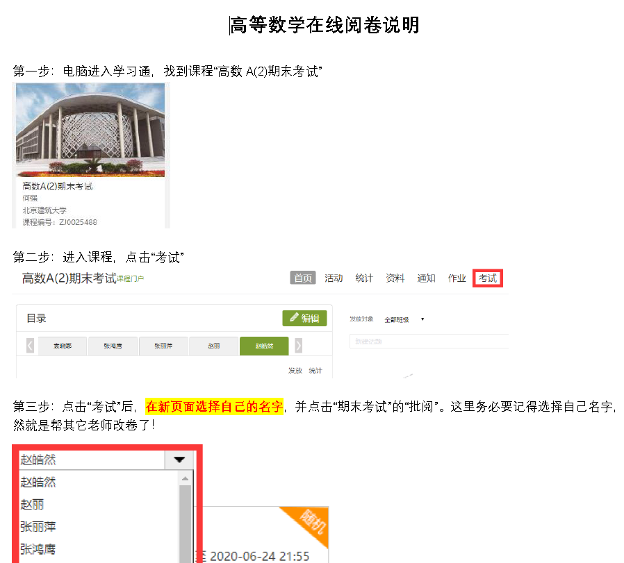 经过前期充分的准备,迎来了6月28日的线上考试,考试过程中出现的各种情况,都被妥善处理,考试过程井然有序,顺利完成。作为考试周最后一天的最后一门考试,同学们考完后大大地松了口气,而教学团队立即开始了紧张的阅卷工作。教师们克服了线上阅卷带来的种种困难,三天内就发布了考试成绩。